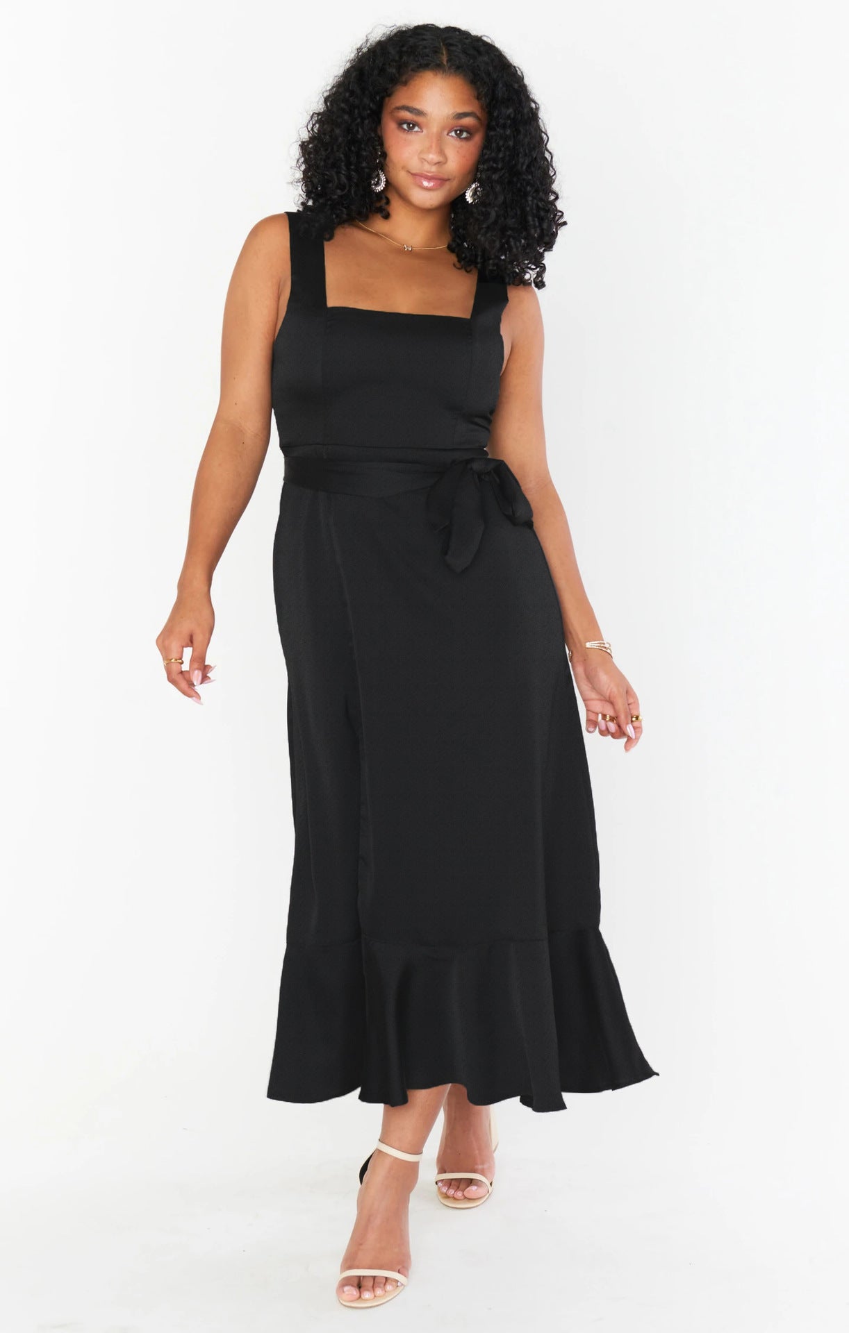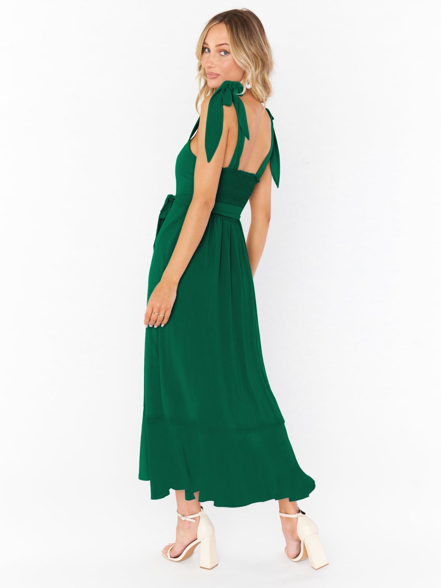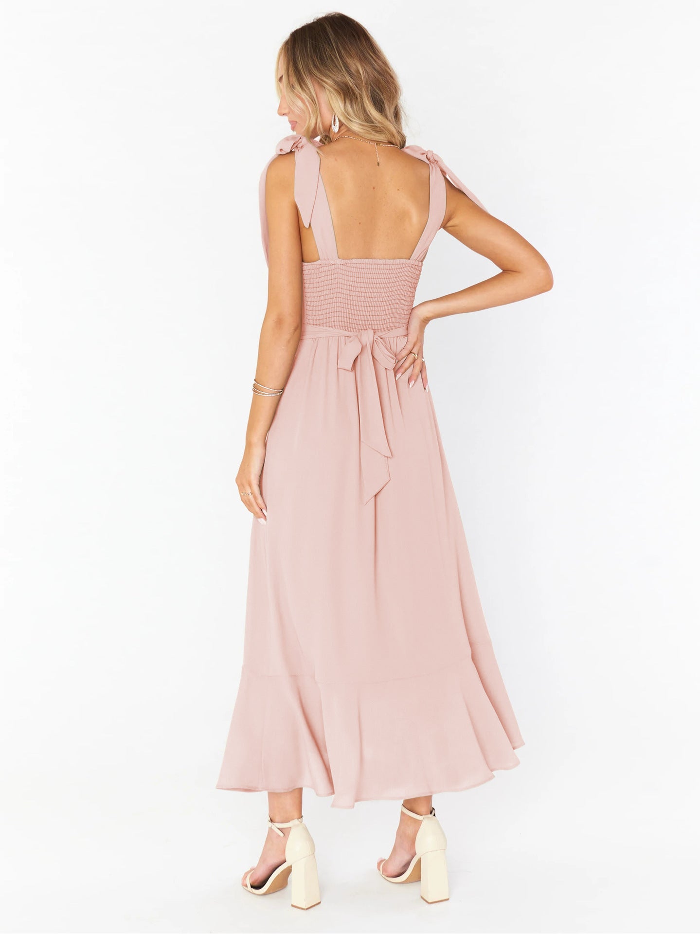 Adjustable Tie-strap Slit Dress