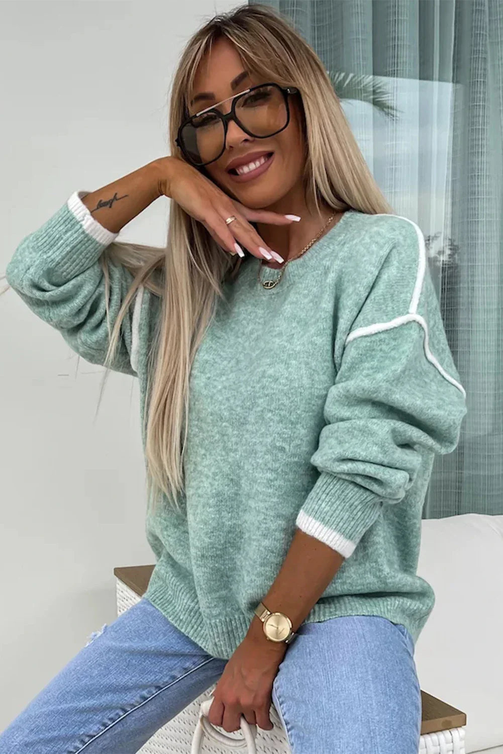 Contrast Edge Crewneck Sweater