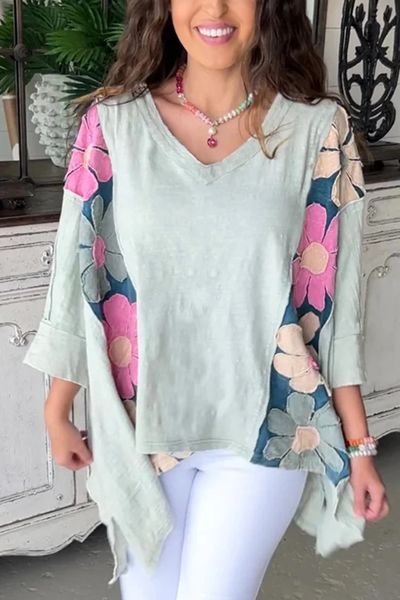 Floral Patchwork Bracelet Sleeve Oversized Top