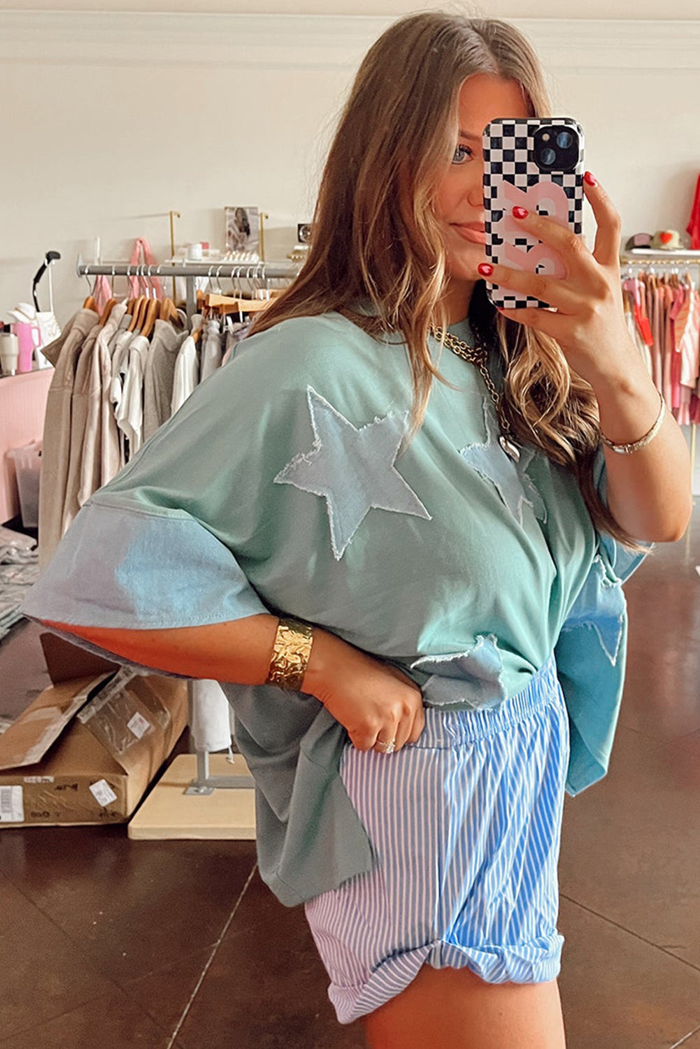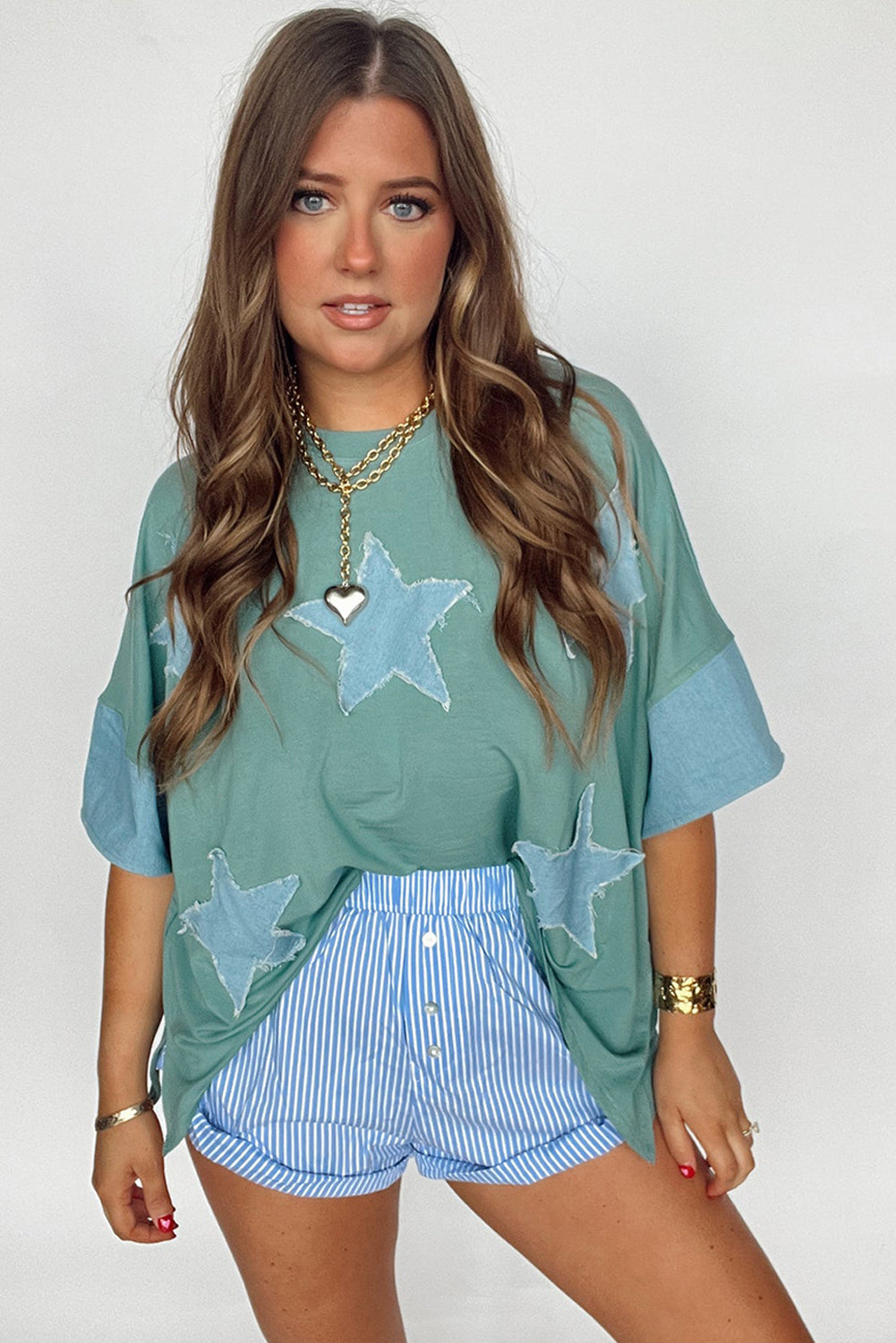 Frayed Denim Star Patched T Shirt