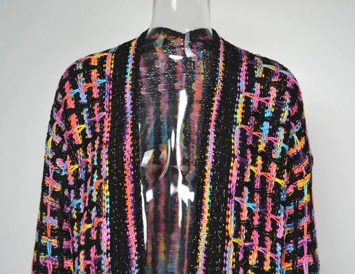 Maxi Cardigan in Multi Colors with Fringe Hem