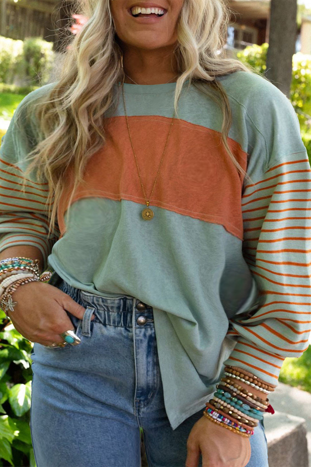 Plus Size Striped Colorblock Tee with Slits