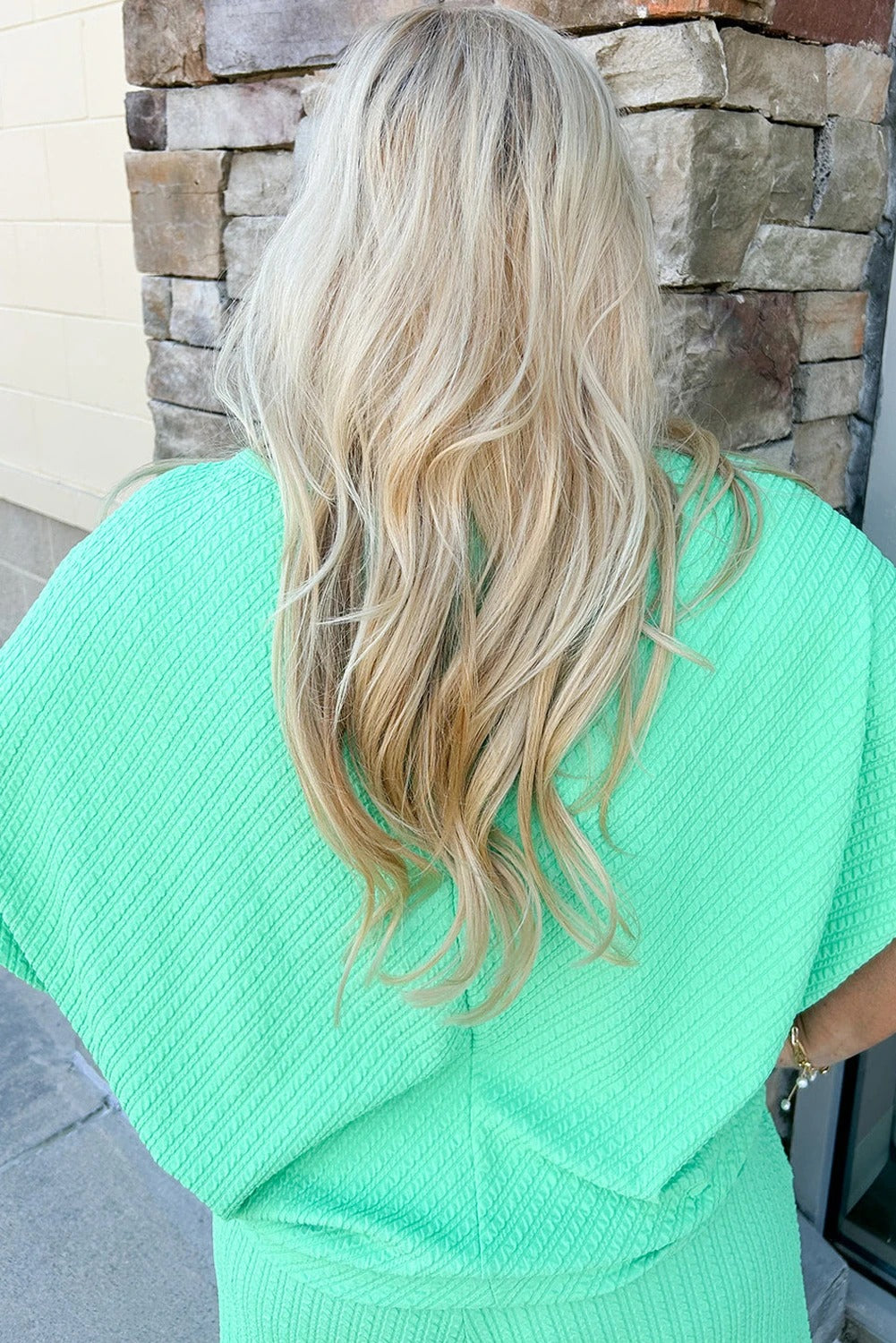 Plus Size Textured Batwing Sleeve Tee Wide Leg Pants Set