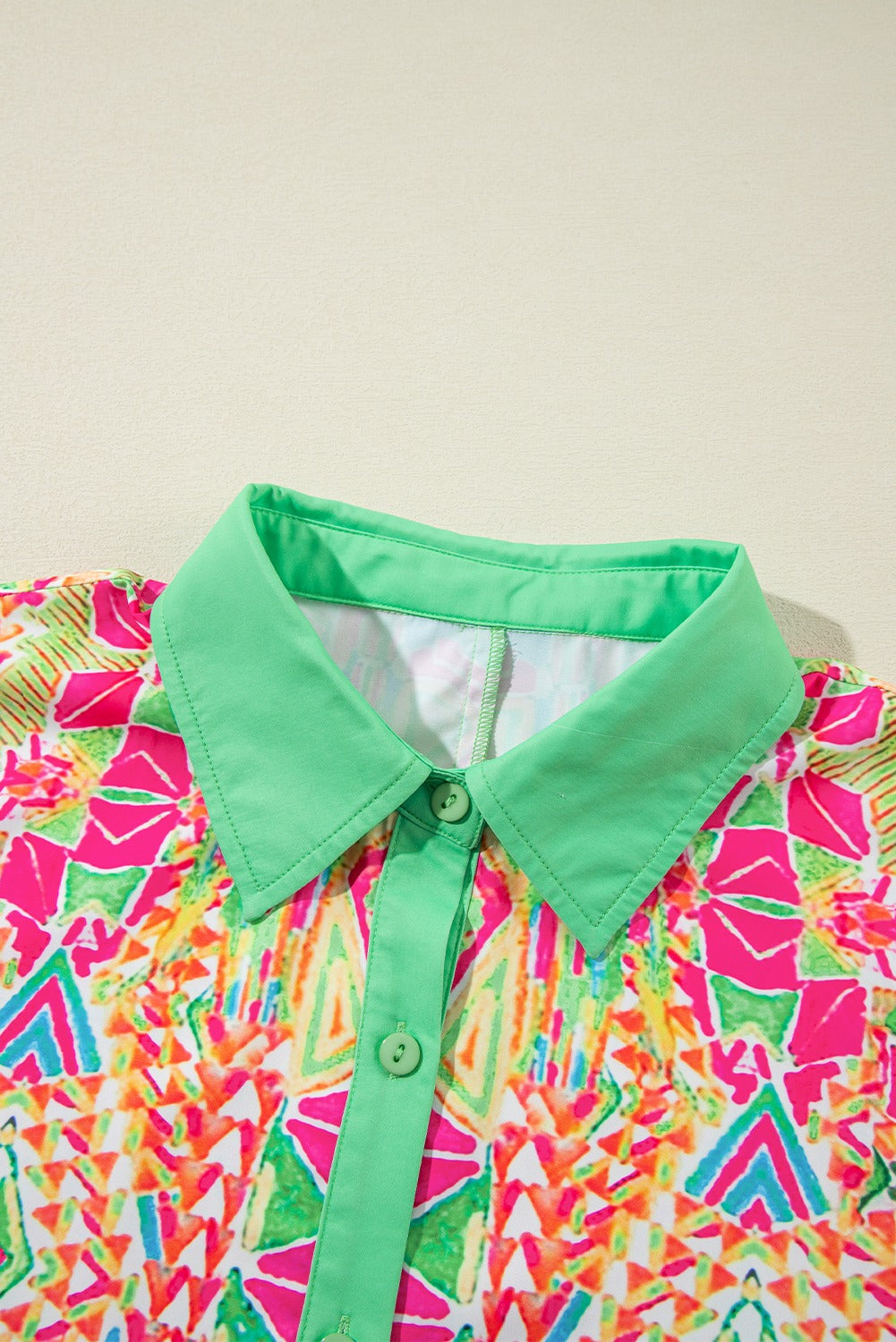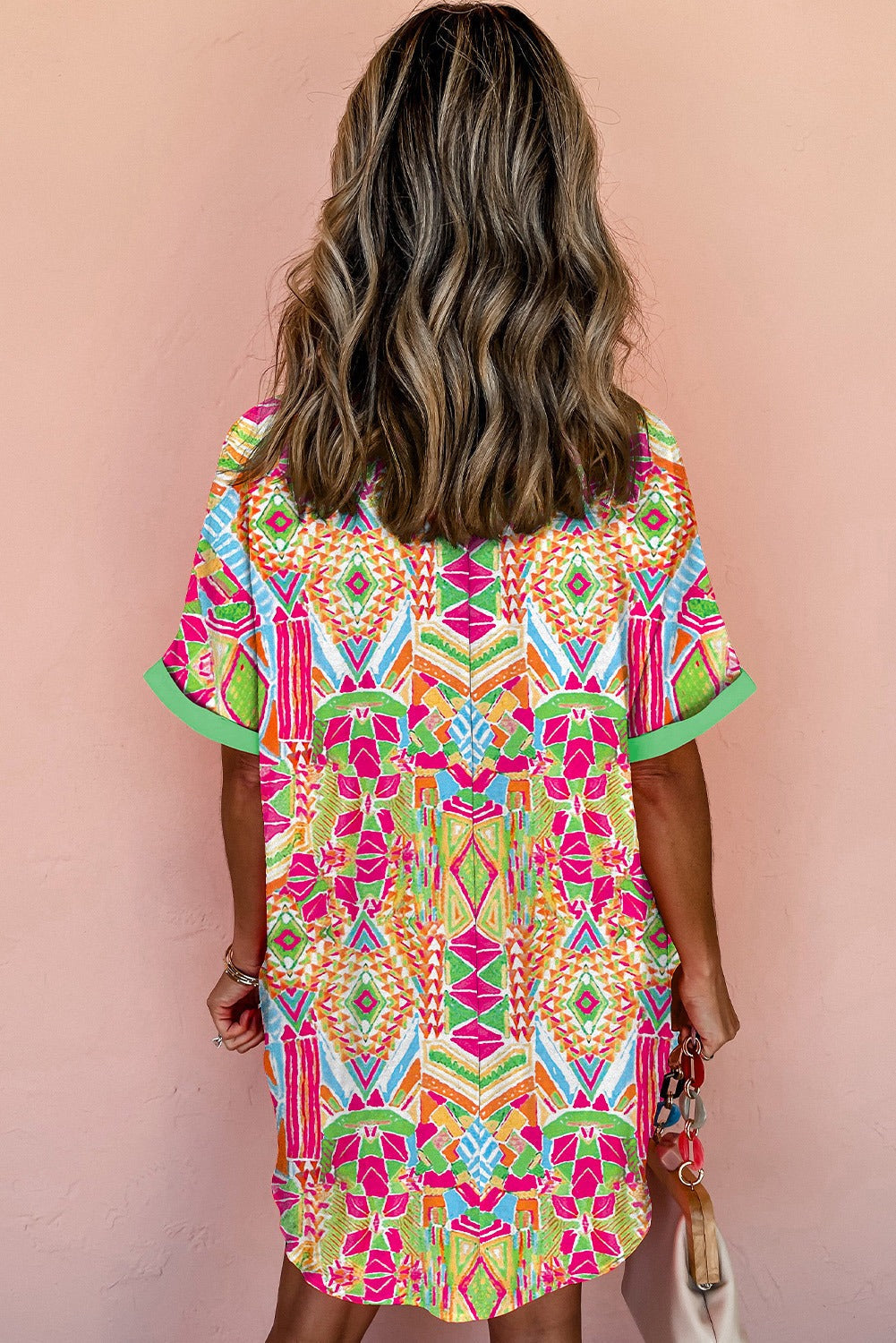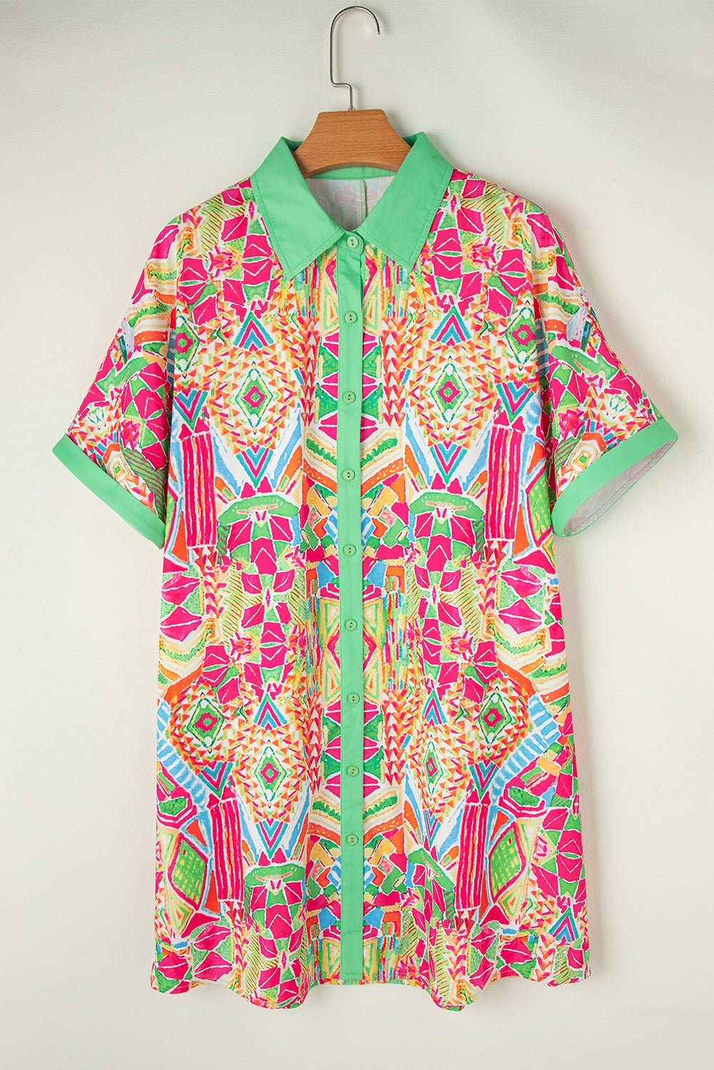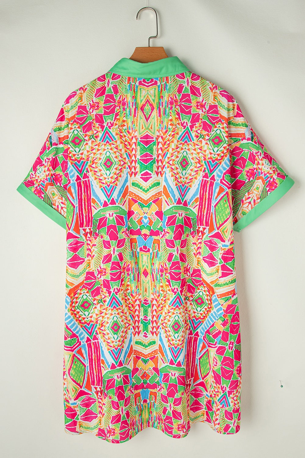 Geometric Contrast Short Sleeve Shirt Dress
