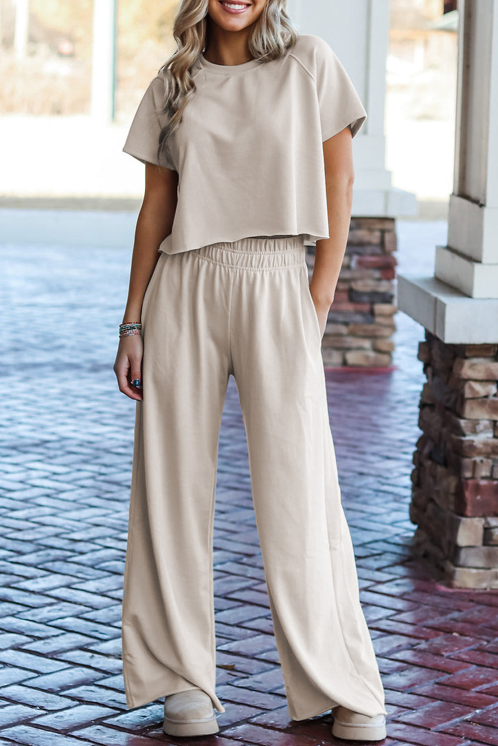 Raw Hem Loose Tee and Wide Leg Pants Set