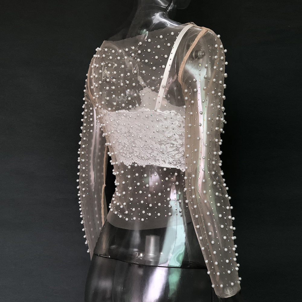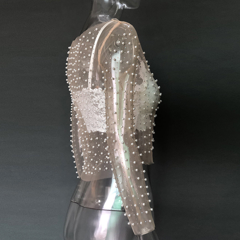 Rhinestone Pearl Mesh Top