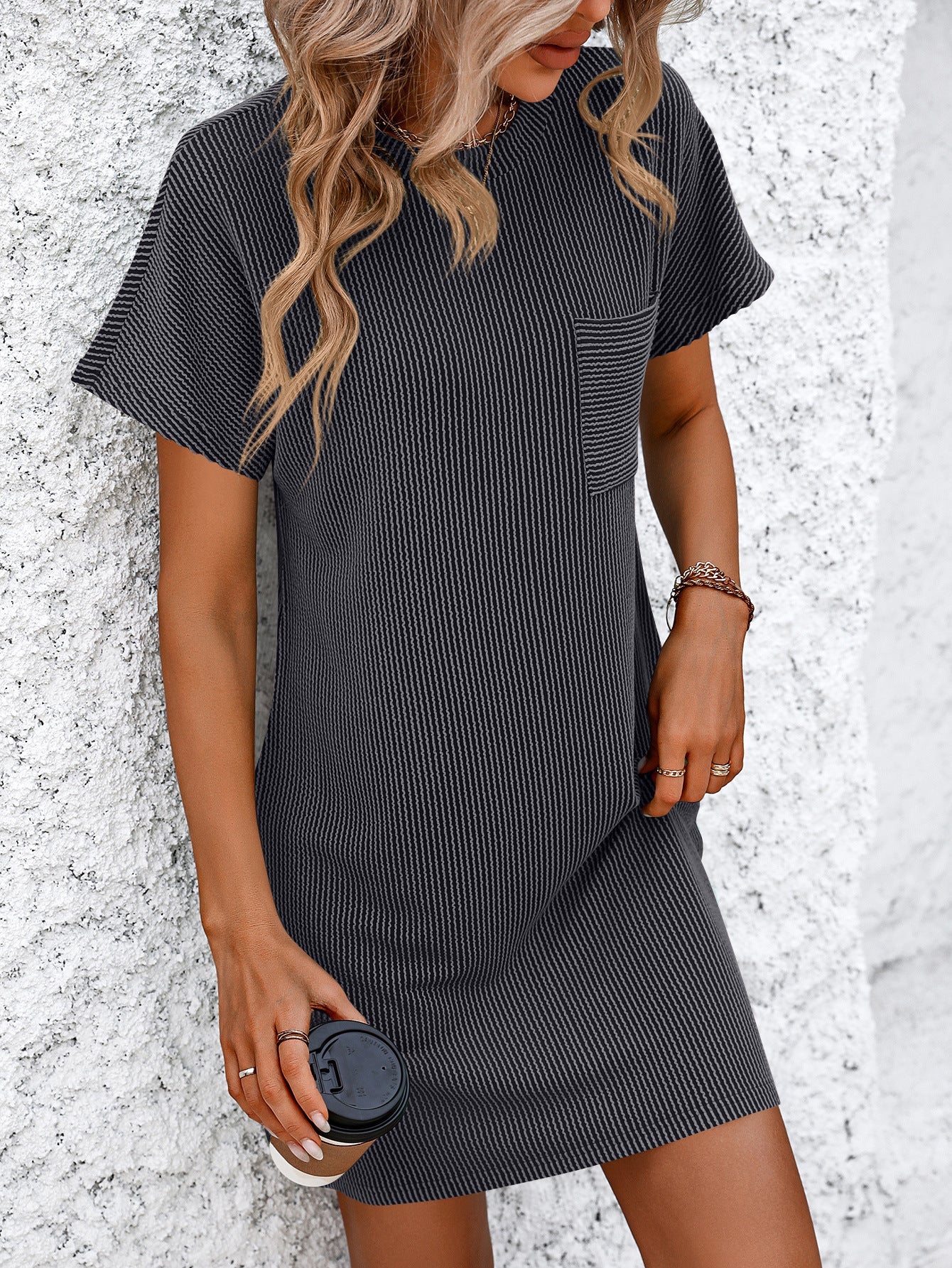Ribbed Short Sleeve Pocket Dress-8 Colors