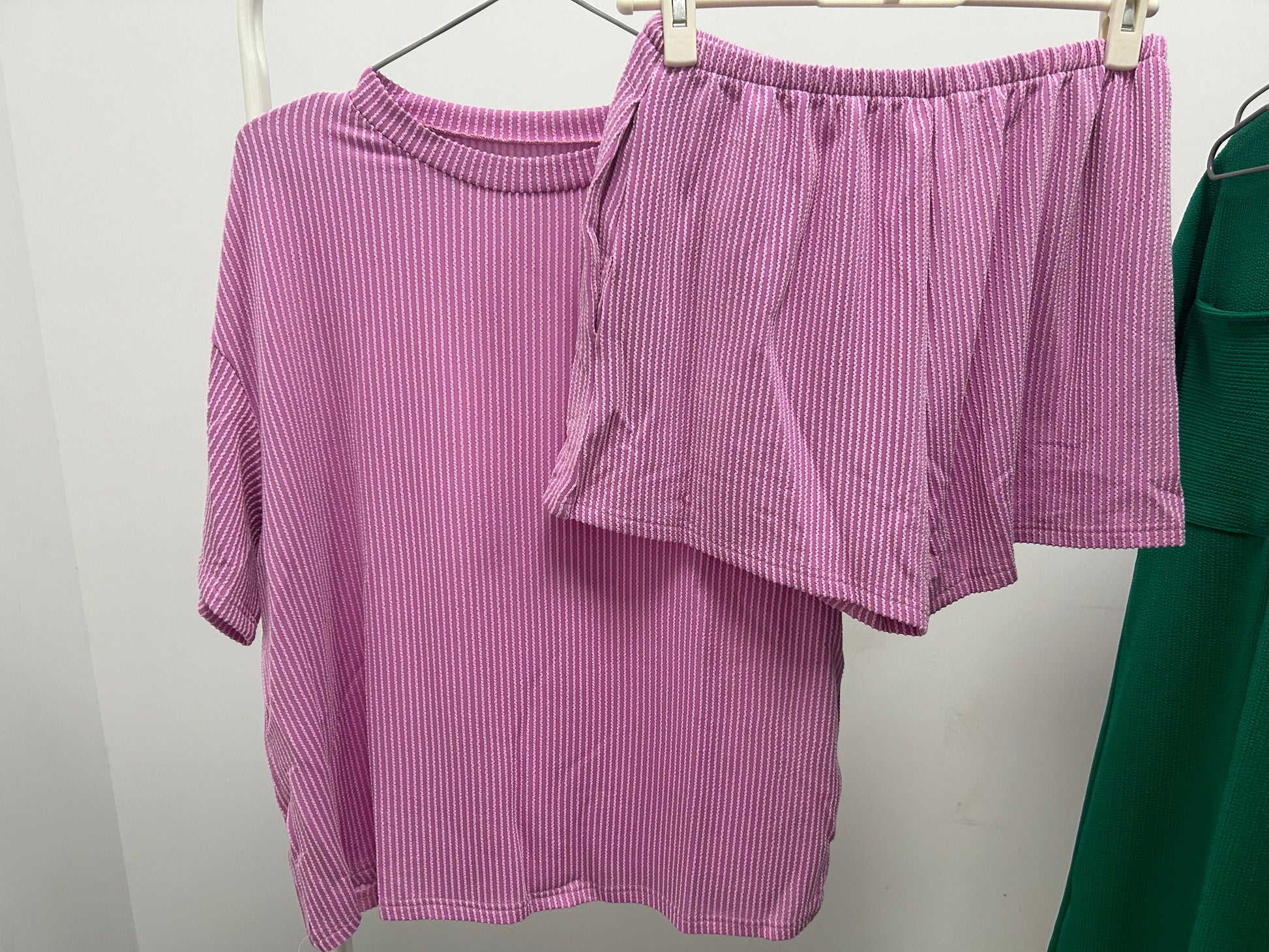 Ribbed Textured Knit Loose Fit Tee and Shorts Set