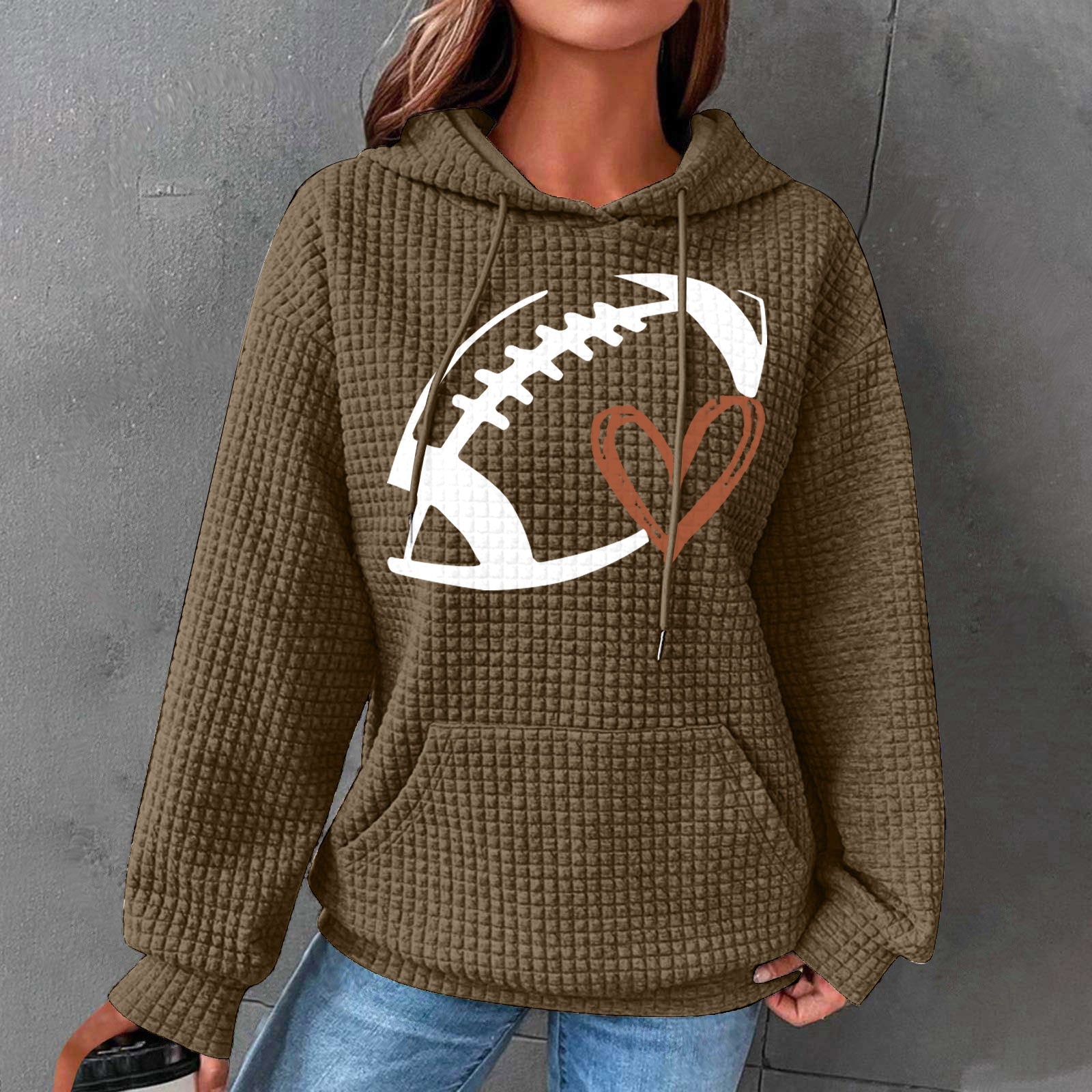 Football Print Hooded Waffle Sweatshirt
