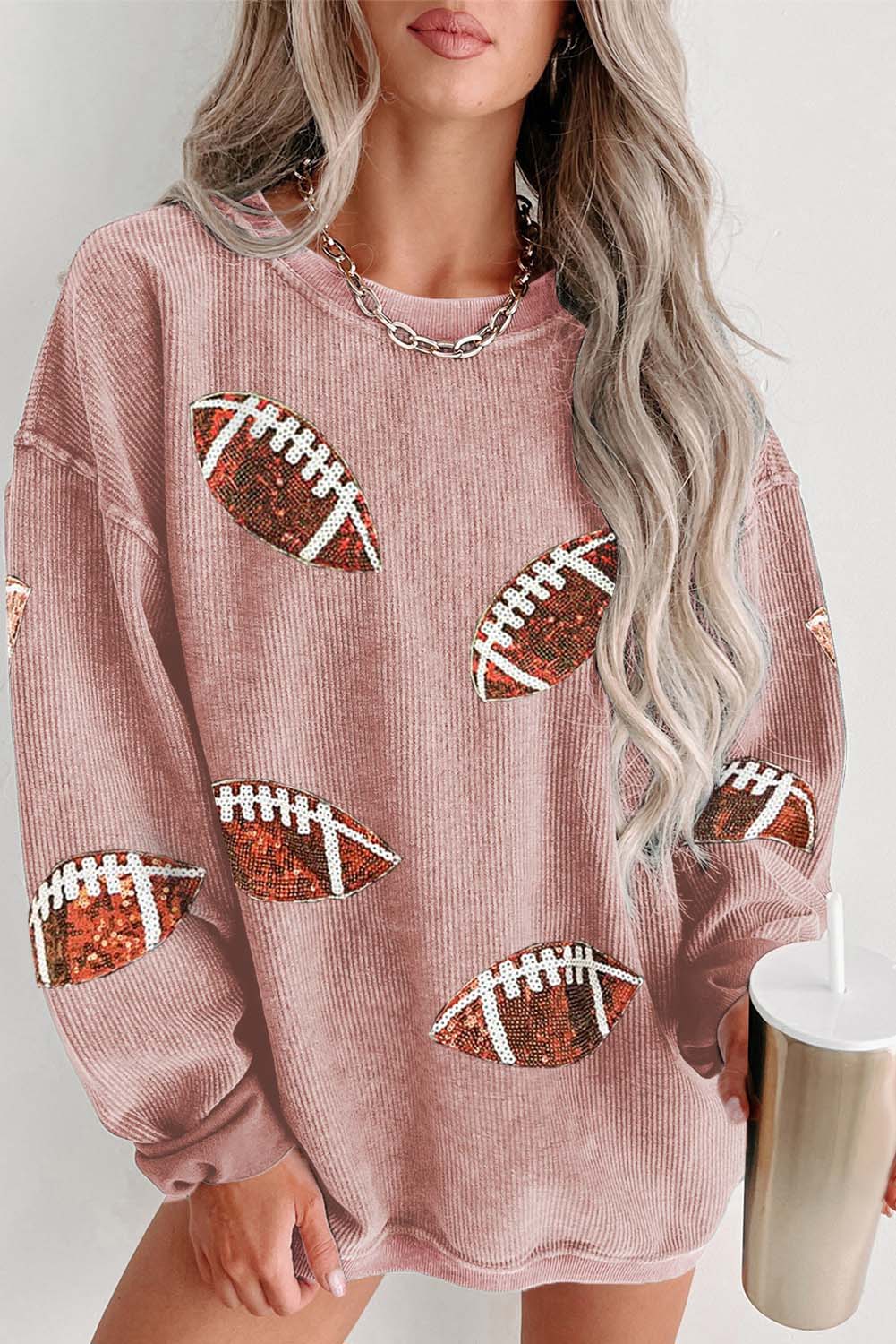 Sequin Rugby Graphic Corded Baggy Sweatshirt