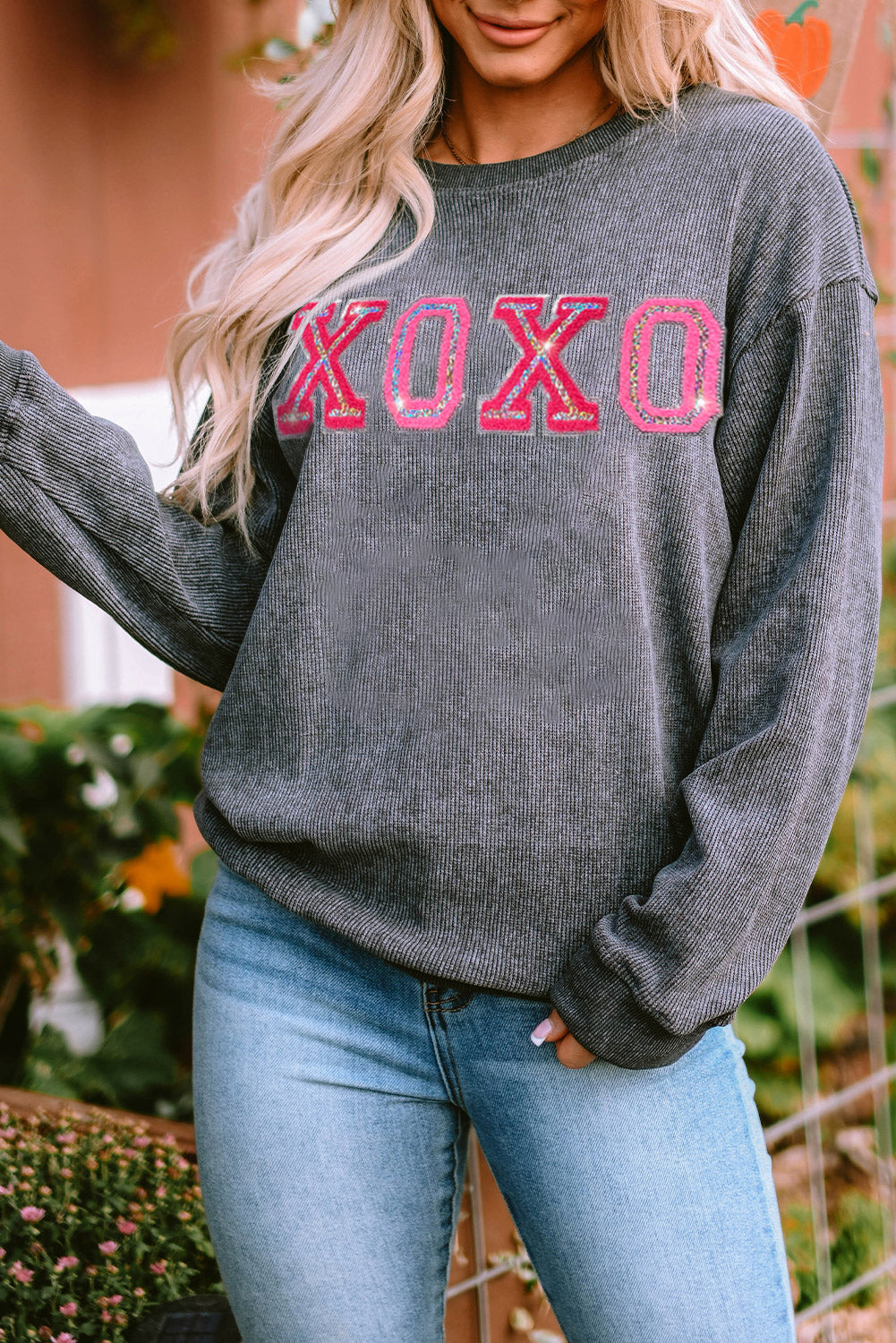 Sequin XOXO Corded Crew Neck Sweatshirt