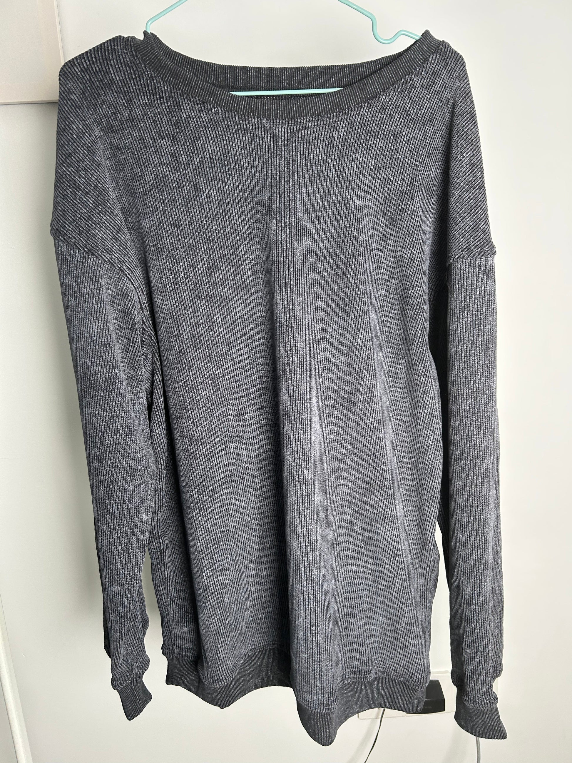 Solid Ribbed Knit Round Neck Pullover Sweatshirt