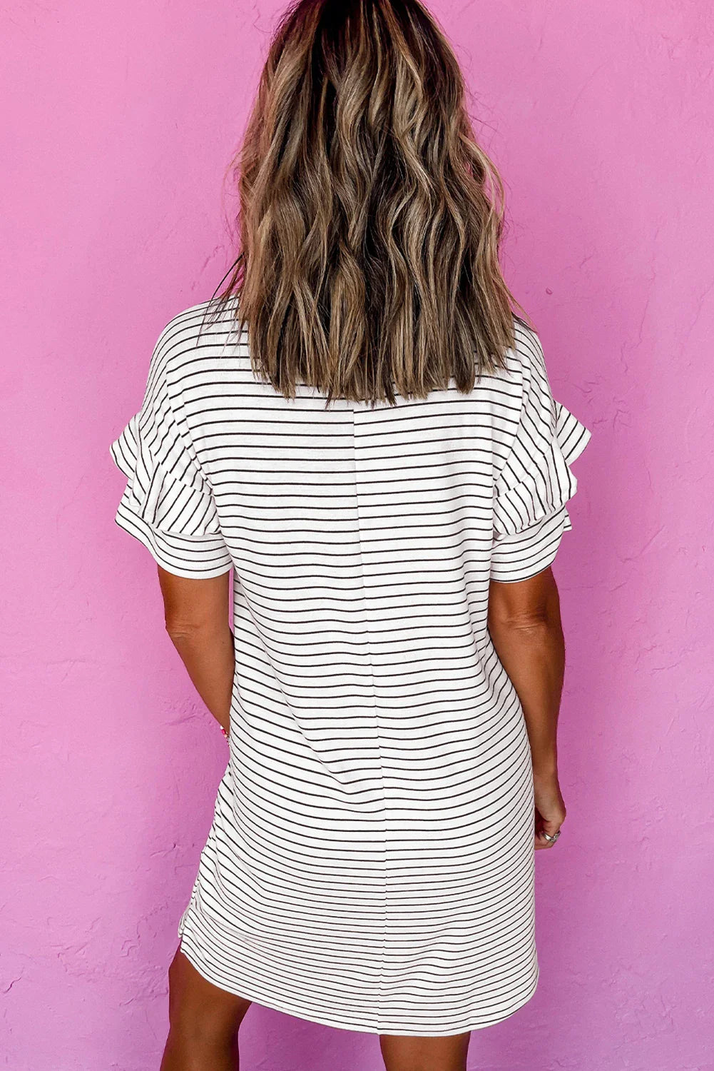 Stripe Ruffle Sleeve T Shirt Dress