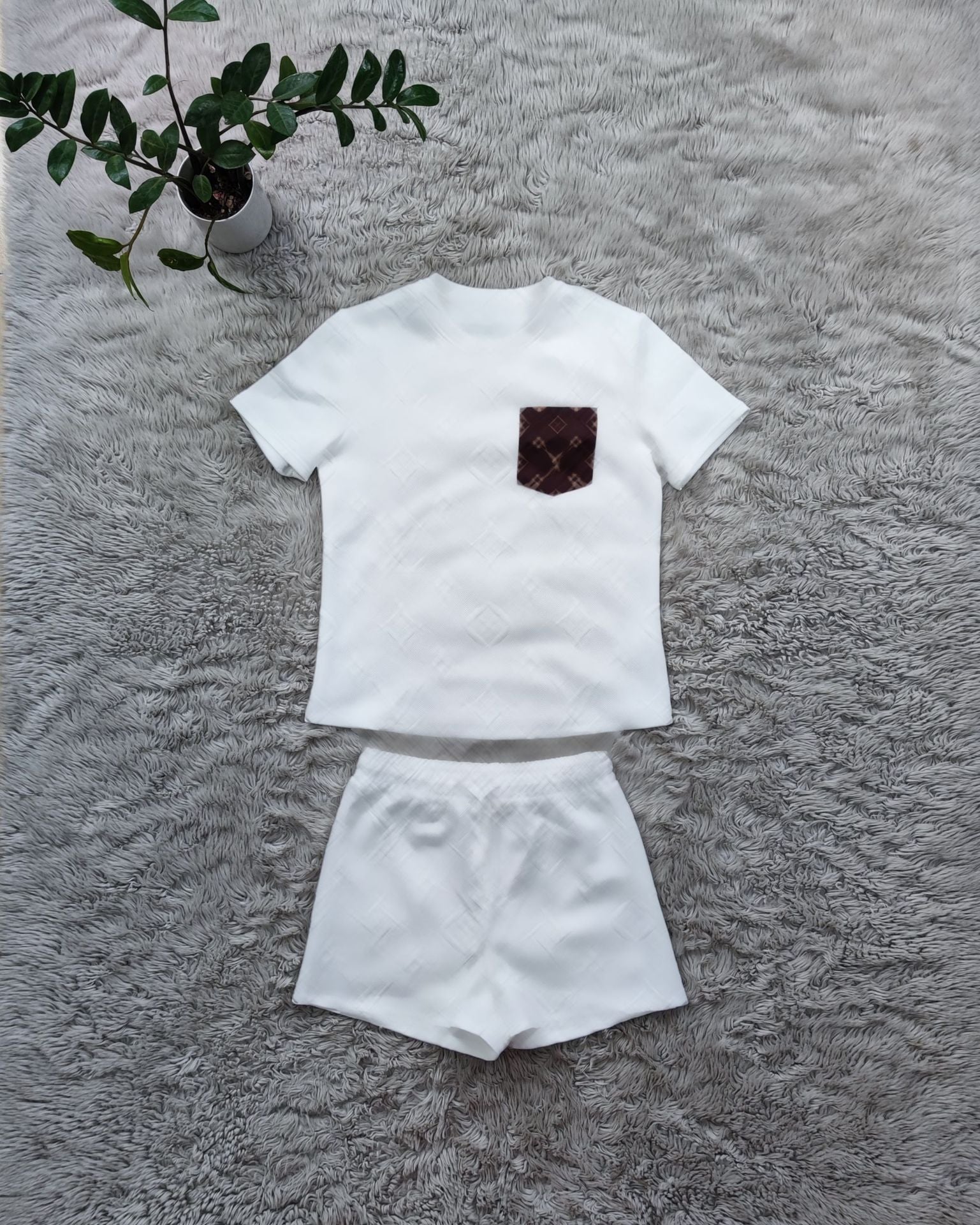 L//v Textured Front Pocket Shorts And Shorts Set